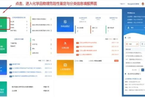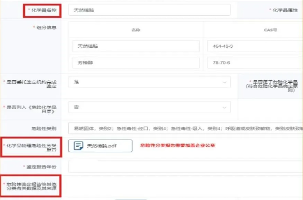 在登记系统新增化学品信息,上传分类报告,由应急管理部化学品登记中心评估并出具审核意见;