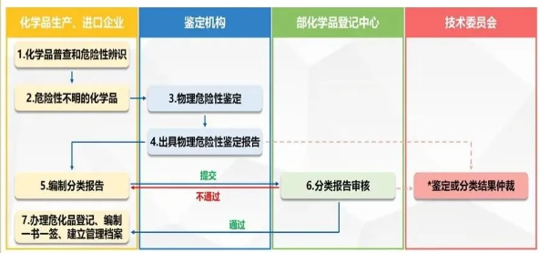根据《化学品物理危险性鉴定与分类管理办法》(国家安全监管总局令第 60 号,简称 “60 号令”)第八条:化学品生产、进口单位应当对本单位生产或进口的化学品进行普查和物理危险性辨识,符合要求的需向鉴定机构申请鉴定,并通过「危险化学品登记综合服务系统」(https://whpdj.mem.gov.cn/)提交分类报告,获取审核意见。